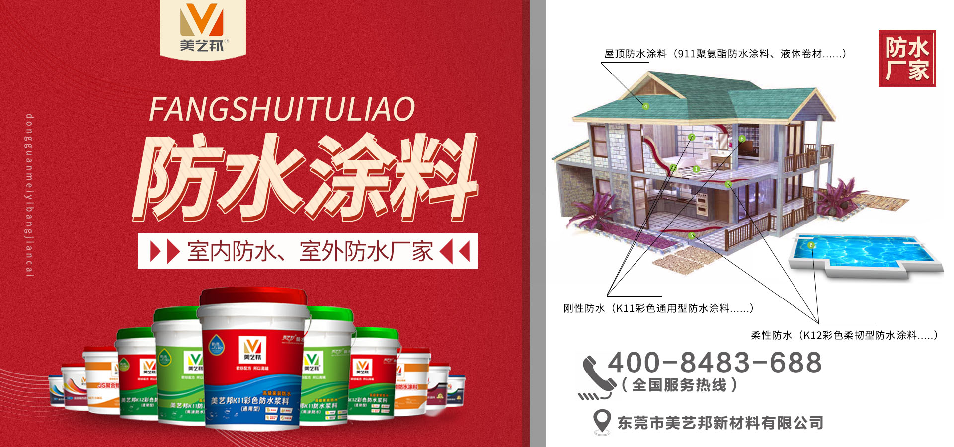 東莞市美藝邦新材料有限公司,是一家建筑防水行業集研發、設計、生產、銷售于一體的高新技術企業。基于東莞生產基地,開展全國建筑輔材加盟招商代理批發業務。 我司采用國內外先進的科學技術的同時,緊跟國際發展趨勢及結合國內市場特點,自主研發出健康環保型產品,其中包含防水涂料(K11彩色通用型防水涂料、K12彩色柔韌型防水涂料、JS聚合物防水涂料等等),瓷磚背膠(加強型瓷磚背膠、大理石瓷磚背膠、速干型瓷磚背...